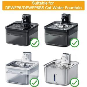 Compatible Cat Fountain: This cat water filter replacement only compatible with DownyPaws wireless cat water fountain, battery operated automatic pet water fountain. Fit model DPWFP6.