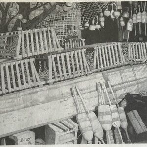 This is for a pack of a dozen graphite blank notecards, nautical elements with lobster traps and buoys. Perfect for coastal decor and special notes.