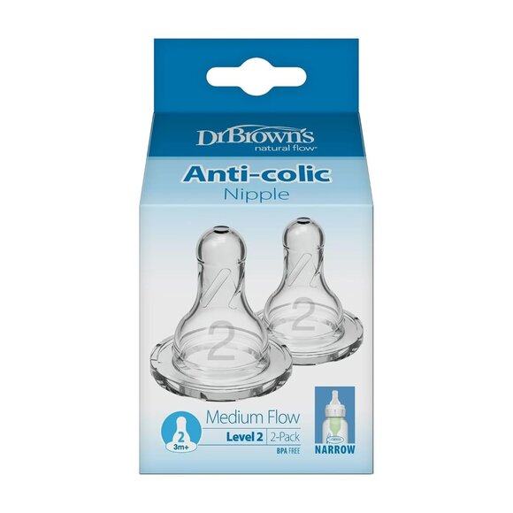Dr. Brown’S Natural Flow Level 2 Narrow Baby Bottle Silicone Nipple, Medium Flow