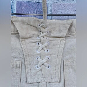 Color is beige made of military equipment sailor buttons unisex . Has a small stain dots very light not noticeable looks darker in pictures but on light you can hardly see them . Retail $399