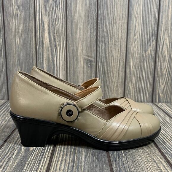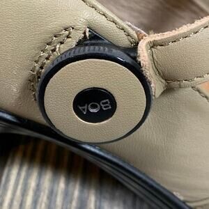 These shoes are very gently worn and clean. Color is beige, nude, or tan. BOA lacing system for easy tightening and loosening. Leather uppers.