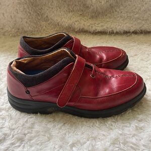 Dr Comfort Delight leather Red shoes hook & loop adjustable Velcro strap SZ11W .Pre owned in good used condition small discoloration on the leather.E9