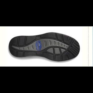 In GREAT new condition- used only twice. Comes with removable cushion inserts. Keep your feet comfortable all day long in our men's Mike shoe. The lightweight, classic boat shoe design is a great leisure-time shoe for true comfort and classic good looks. Features a leather upper with a contact closure for a perfect fit. Available in Two-Tone (Black and Chestnut).