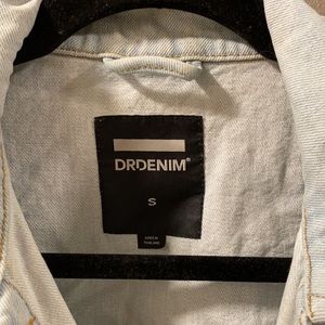 Size Small but fits oversized. Raw hem on bottom of jacket and ends of sleeves.
