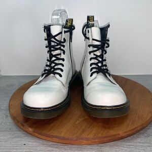Dr Doc Martens 1460J Ladies 5 Mens 4 Combat Boots White Leather Lace Up Side Zip