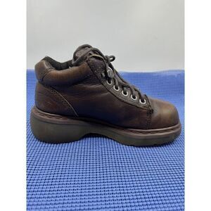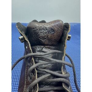 Step out in style with these vintage Dr. Martens boots, made in England with a solid brown leather upper. These boots feature a round toe shape and a hook & eye closure for easy wear. The boots come in a size 7 US MEN'S 8 US WOMEN'S and 6 UK 39 EU with a standard shoe width. These boots are perfect for any season, whether it's winter, summer, fall, or spring. The outsole material is none, and the lining material is also not available. However, the boots are still a great addition to any wardrobe. Get your hands on these boots now and add a touch of class to your outfit!