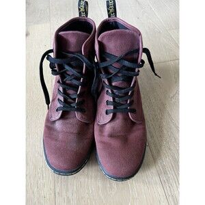 Dr Doc Martens Burgundy Red Canvas Shoreditch Lace Up Airwave Combat Boots Sz 8