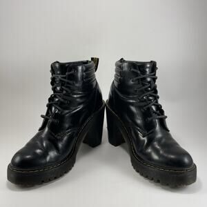 Dr Doc Martens Persephone Heeled Leather Lace Up Boots Black Womens Size 7