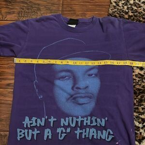 Dr Dre Ain’t Nuthing But A G Thang Purple Graphic Shirt. Size small, please note; has signs of wear, bleach stains and discoloration.