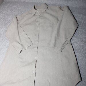 Dr. Flax Womens Linen Button Down Tunic with Pockets 3/4 Sleeve Size S/M Beige