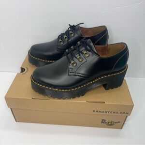Dr. MARTENS Leona Lo Size 9 Vintage Smooth Leather Lug Sole Heeled Shoe, Black