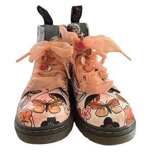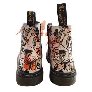 Dr Marten Girls Floral/Butterfly Combat Boots w/Ribbon Lace/Zipper Closure-10