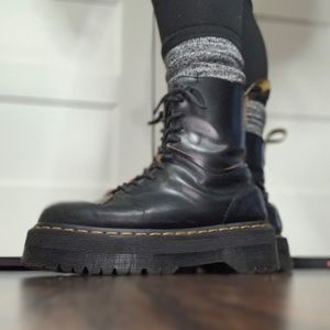100% genuine leather Dr. Marten Jadon Deco platforms. About 1.5 inch platform, lace up only. Small scuff on the right toe, but can be buffed out with some black leather polish.