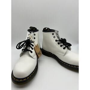 Dr. Martens 101 Yellow Stitch White Smooth Leather Ankle Boots Womens 10/Mens 9