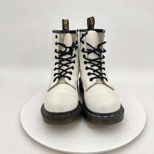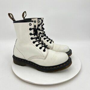 Dr. Martens 11821 Women Size 7 white Leather Black Sole 8 Eye Ankle Combat Boot