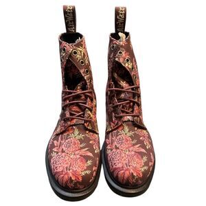 Dr Martens 1460 Beckett Cherry Red Jouy Floral Canvas Boot Size 7M / 8W NWOB