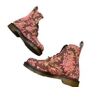 Step into style with the 1460 Beckett limited edition Cherry Red Jouy Floral Canvas Boot. Designed with a beautiful floral pattern, these bold and sturdy boots are perfect for any adventure. Made with high-quality canvas, they offer comfort and durability. Experience fashion and function in one with these must-have boots. New without box. Limited edition pattern, rare & hard to find new. These are marked “mens” but are widely sold as unisex.
