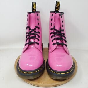 Dr Martens 1460 Boots Womens 6 Pink Patent Leather 8 Eye Lace Up Punk Rave Docs