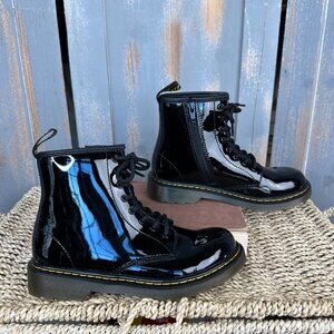 Dr. Martens 1460 J Patent Lamper Lace Up Boot Black Sz L5, M4 NWOB