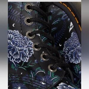Dark florals with a subversive DM’s twist. This reworked edition of our 8-eye boot is built from printed Backhand leather, with gothic florals, cosmic-inspired details and antique silver eyelets. The boot is finished with our signature yellow welt stitching and AirWair heel loop and stands on our durable grooved AirWair sole.