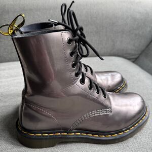 Dr. Martens 1460 Pascal 8 Eye Spectra Patent Combat Boot Metallic Gray Womens 8