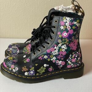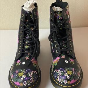 Dr. Martens 1460 Pascal Black Floral Boots Size 6 Doc Martens Flower Combat Punk