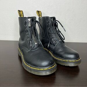 Dr Martens 1460 Pascal Front Zip Arcadia Mid Calf Black Leather Boots