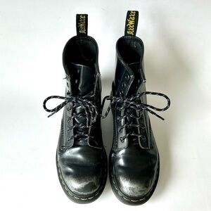 Dr. Martens 1460 Pascal Italian Brush Boot 8-Eye Black Silver Distressed Size 7