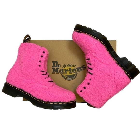 Dr. Martens 1460 Pascal Lux Borg Faux Fur Clash Pink Combat Boot Size 6 Women