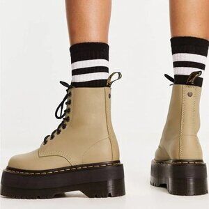 Dr. Martens 1460 Pascal Max Pale Olive Leather Platform Combat Boots EU 39 US 8