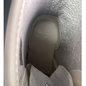 Two Minor imperfections on left boot rear photo. The leather isn't compromised in any way. Dirt on left lace, see photo. Box has slight damage on the corner.