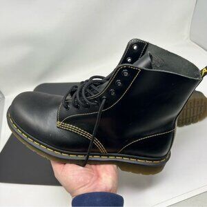 Dr Martens 1460 Pascal Yellow Stitch Black Leather Boots Men size 10 excellent