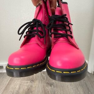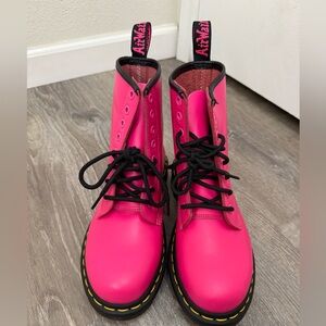 Dr Martens 1460 Smooth Leather Boots Neon Clash Pink Lace Up Women’s Size 5