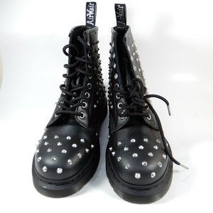 Dr. Martens 1460 Stud Wanama Combat BOOTS Size 7 Black Leather 8-Eye NEW