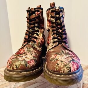 Dr Martens 1460 Victorian Roses Floral Canvas Women's 6 Brown Pink Combat Boots