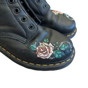 Classic Doc Marten Moto Boot with gorgeous rose embroidery on outer sides