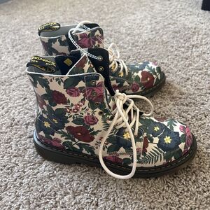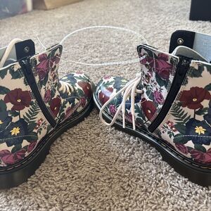Dr Martens 1460 Y New Womens Size 7 Floral Flower Boots Lace Up Zip Leather
