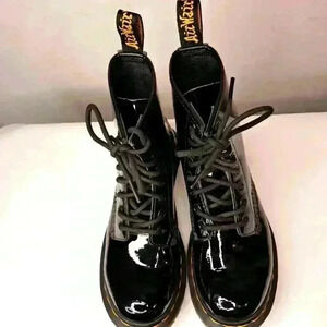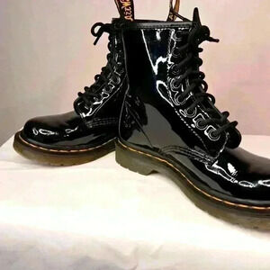 From Dr. Martens, the Women's 1460 Classic Patent Leather Combat Boots feature: