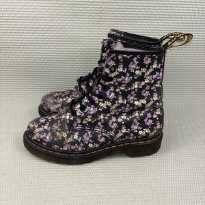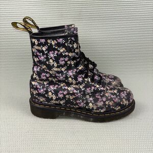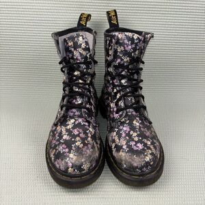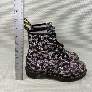 Dr. Martens 1460 Floral Smooth Black Leather Combat Boots Womens Size 6