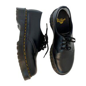 These Dr. Martens 1461 Bex shoes boast a timeless oxford style, crafted with premium smooth black leather for durability and flexibility. The signature yellow stitching and rugged outsole enhance their iconic design, while the lace-up closure ensures a secure fit. Suitable for both men and women, offering comfort and versatility in every step.