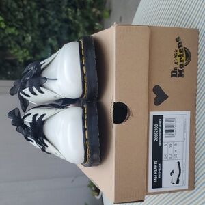 white leather uppers with black patent leather heart on bilateral heel. like new in original box. worn twice. no longer available on Dr. Marten site.