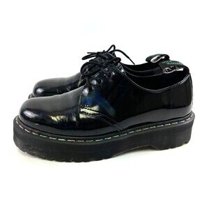 Dr Martens 1461 Quad Rainbow Patent Leather Platform Black Iridescent Mens 11.