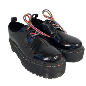 Dr. Martens 1461 Quad Rainbow Patent Platform Shoes black size 7 ladies 6 Men