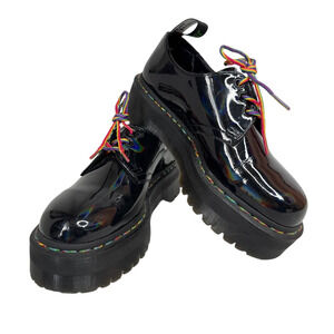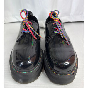 Dr. Martens 1461 Quad Rainbow Patent Platform Shoes black size 7 ladies 6 Men