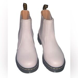 New without box, Dr. Martens 2976 Original Yellow and Black Sole. Virginia Leather Chelsea boot in vintage taupe, milled new buck. Size 10