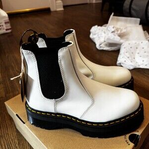 Dr Martens 2976 Quad Chelsea Boots White Platform Leather Women’s 10 Men’s 9 NIB