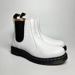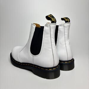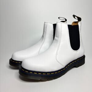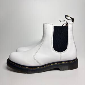 Dr. Martens 2976 Yellow Stitch Smooth Leather Chelsea Boots in White