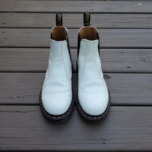 Dr Martens 2976 Yellow Stitch White Smooth Leather Elastic Slip-on Chelsea Boots