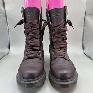 Dr Martens Aimilie Women’s Sz 8 Union Jack Flag Combat Fold Down Boots Oxblood