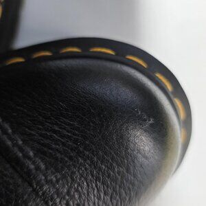 Great pair of DM combat boots that can be worn laced all the way up or folded over to show the faux fur lining. There is a loop on the back for...whatever you're in to! They are in great pre-loved condition, there is a tiny scuff on one of them that I photographed. Size 8US 39EU in black pebbled leather.